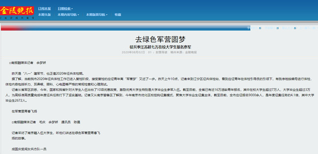 【金陵晚報(bào)】去綠色軍營(yíng)圓夢(mèng)