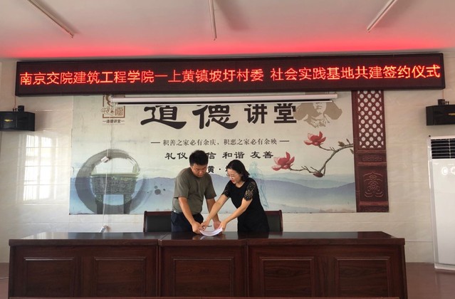 8月12日,建筑工程學(xué)院與上黃鎮(zhèn)坡圩村委確立了共建社會(huì)實(shí)踐基地的意向。當(dāng)天下午,唐喜芬副書記代表建筑工程學(xué)院與坡圩村委在當(dāng)?shù)睾炗喠舜髮W(xué)生社會(huì)實(shí)踐基地共建協(xié)議書。