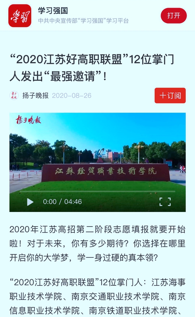 【學(xué)習(xí)強(qiáng)國(guó)】“2020江蘇好高職聯(lián)盟”12位掌門人發(fā)出“最強(qiáng)邀請(qǐng)”!