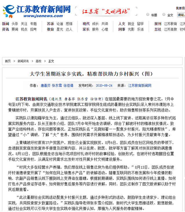 【江蘇教育新聞網(wǎng)】大學(xué)生暑期返家鄉(xiāng)實踐,精準(zhǔn)幫扶助力鄉(xiāng)村振興