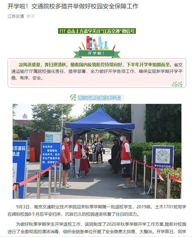【江蘇交通】開學啦!交通院校多措并舉做好校園安全保障工作