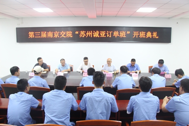 9月15日上午,第三屆南京交院現(xiàn)代學(xué)徒制“蘇州誠亞班”開班典禮在明志樓308會議室舉行。蘇州誠亞工程機械有限公司總經(jīng)理蘇卿、蘇州誠亞南京分公司服務(wù)主管王文彬,軌道學(xué)院院長陳林山、副院長韓京海及12名蘇州誠亞準(zhǔn)員工參加了會議。會議由陳林山院長主持。