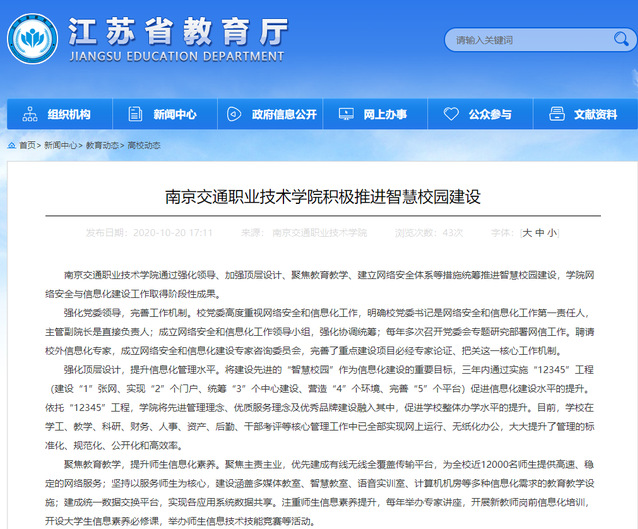 【江蘇省教育廳】南京交通職業(yè)技術(shù)學(xué)院積極推進(jìn)智慧校園建設(shè)