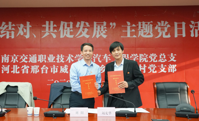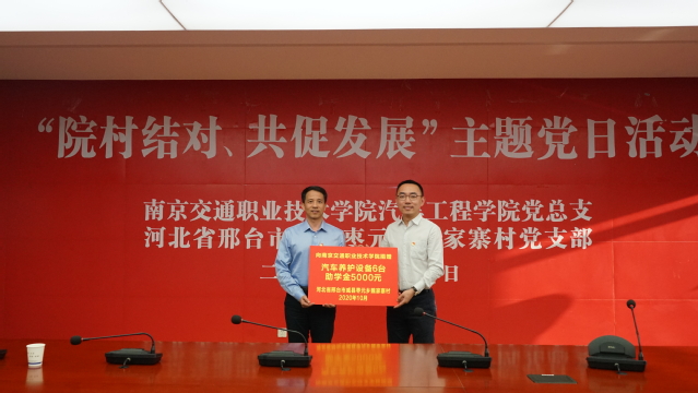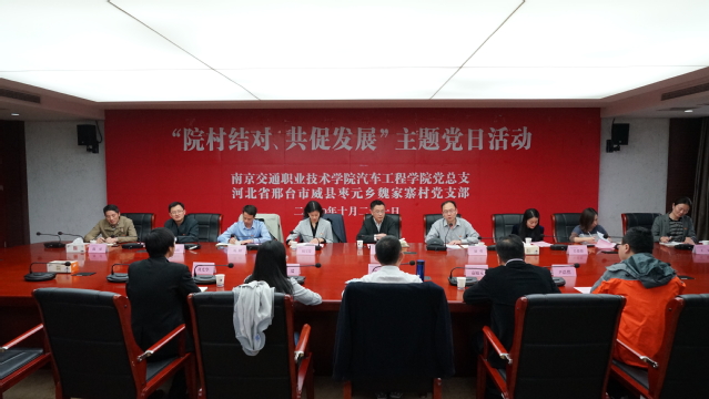 10月21日下午,汽車工程學(xué)院黨總支與河北省邢臺(tái)市威縣棗元鄉(xiāng)魏家寨村黨支部共同組織“院村結(jié)對(duì)、共促發(fā)展”主題黨日活動(dòng)。教育部掛職魏家寨村駐村第一書記皇甫磊、教育部掛職魏家寨村黨支部副書記李瑞,江蘇省學(xué)生資助管理中心副主任袁旭元,學(xué)院副院長(zhǎng)楊益明,學(xué)院黨委組織部、學(xué)工部、校企合作辦等部門負(fù)責(zé)人,汽車工程學(xué)院全體院領(lǐng)導(dǎo)、各黨支部書記和委員、各內(nèi)設(shè)機(jī)構(gòu)負(fù)責(zé)人以及受資助的學(xué)生,魏家寨村村辦企業(yè)河北飛順焊接設(shè)備有限公司總經(jīng)理劉光華、江蘇康眾汽配連鎖有限公司化工品品類經(jīng)理尹浩然參加了活動(dòng)。
