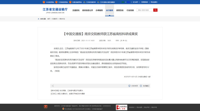 【江蘇省交通運輸廳網站】南京交院教師獲江蘇省高校科研成果獎