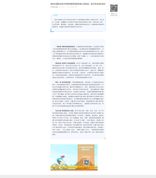 【江蘇學(xué)生資助】南京交通職業(yè)技術(shù)學(xué)院將精準(zhǔn)資助和育人相結(jié)合,助力學(xué)生成長(zhǎng)成才