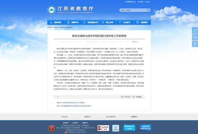 【江蘇省教育廳官網(wǎng)】南京交通職業(yè)技術(shù)學(xué)院積極打造體育工作新格局
