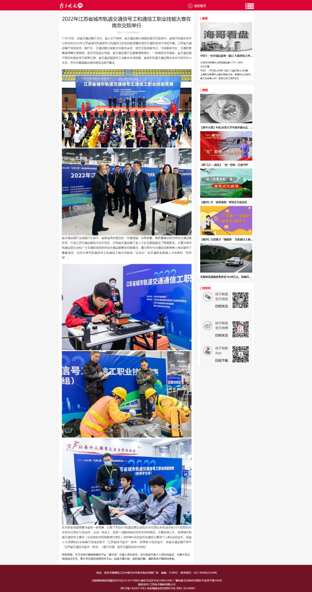 【揚(yáng)子晚報(bào)】2022年江蘇省城市軌道交通信號(hào)工和通信工職業(yè)技能大賽在南京交院舉行