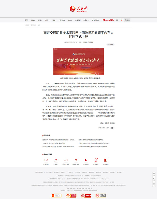 【人民網(wǎng)】南京交通職業(yè)技術(shù)學院網(wǎng)上思政學習教育平臺在人民網(wǎng)正式上線