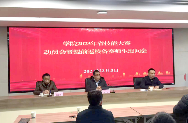2月3日上午,學(xué)院在弘毅樓223會(huì)議室召開(kāi)了2023年省職業(yè)技能競(jìng)賽動(dòng)員會(huì)暨提前返校備賽師生慰問(wèn)會(huì)。自大年初七開(kāi)始參加省職業(yè)技能競(jìng)賽選手和指導(dǎo)老師們自發(fā)的陸續(xù)返校,截止今天返校師生120余名。學(xué)院領(lǐng)導(dǎo)高度肯定師生們主動(dòng)放棄休息投身大賽的熱情,要求召開(kāi)會(huì)議進(jìn)行大賽動(dòng)員并慰問(wèn)備賽的師生。