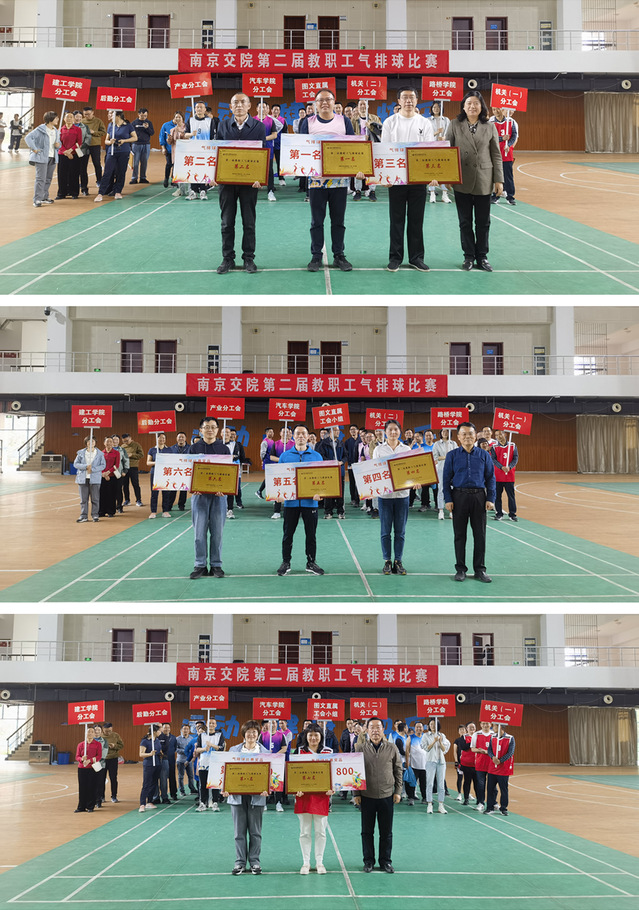 閉幕式首先由體育部主任孫志偉同志宣布比賽結(jié)果:比賽第一名:機(jī)關(guān)二分工會(huì);第二名:圖文信息分工會(huì);第三名:路橋與港航工程學(xué)院分工會(huì);第四名:汽車(chē)工程學(xué)院分工會(huì);第五名:產(chǎn)業(yè)分工會(huì);第六名:后勤分工會(huì);第七名:機(jī)關(guān)一分工會(huì);第八名:建筑工程學(xué)院分工會(huì)。學(xué)院領(lǐng)導(dǎo)分別為獲獎(jiǎng)單位進(jìn)行了頒獎(jiǎng)。