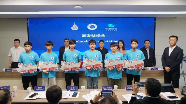 會(huì)上,新能源汽車專業(yè)南京交院教師代表和泰方教師代表、中泰學(xué)生代表,分別做了發(fā)言。中泰師生將同心同行,共同致力于“新能源汽車檢測(cè)與維修技術(shù)”國際化人才培養(yǎng)及人文交流合作,為中泰兩國的友誼搭建橋梁。華晟經(jīng)世張重總裁助理為我校首屆“新能源汽車檢測(cè)與維修技術(shù)”泰國創(chuàng)新班學(xué)生頒發(fā)了企業(yè)獎(jiǎng)學(xué)金。