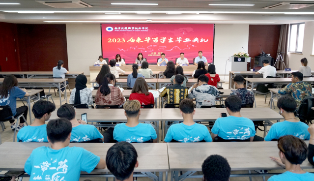 典禮開(kāi)始,老師同學(xué)共同觀看了《撾行撾訴,中國(guó)元素》《歸園田居》《河西走廊》三部留學(xué)生風(fēng)采展示視頻和《感恩NJITT,再見(jiàn)NJITT》留學(xué)生畢業(yè)感言視頻,回顧了2023屆留學(xué)生多姿多彩的校園生活,感受到了同學(xué)們?cè)谀暇┙辉簩W(xué)習(xí)的辛苦付出和取得的突出成績(jī)。