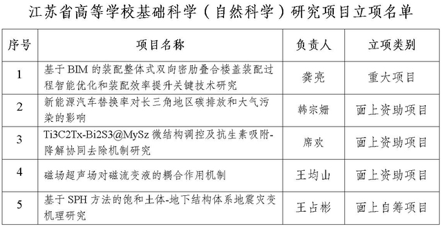 近日,江蘇省教育廳公布了2023年度江蘇省高等學(xué)?;A(chǔ)科學(xué)(自然科學(xué))研究項目立項通知(蘇教科函〔2023〕8 號),學(xué)院成功獲批5項。其中,重大項目1項,面上資助經(jīng)費項目3項,面上自籌經(jīng)費項目1項(名單附后)。