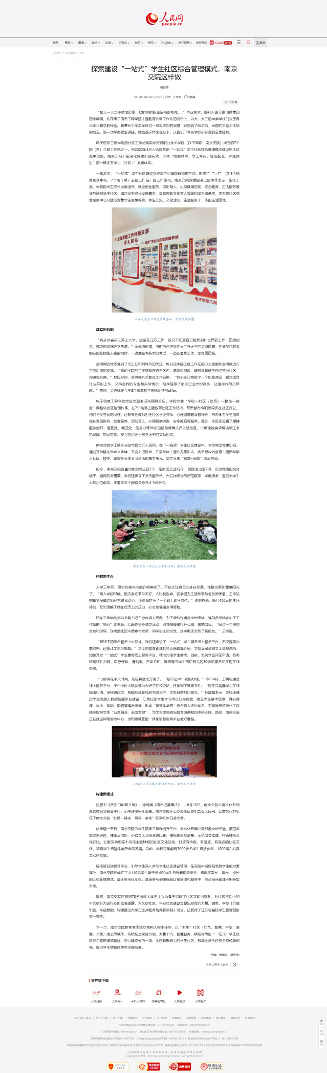 【人民網(wǎng)】探索建設(shè)“一站式”學(xué)生社區(qū)綜合管理模式,南京交院這樣做