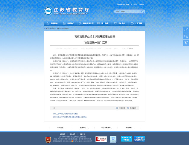【江蘇省教育廳官網(wǎng)】南京交通職業(yè)技術(shù)學(xué)院開展理論宣講 “走基層進(jìn)一線”活動