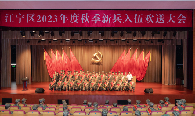 9月15日下午,江寧區(qū)2023年度秋季新兵入伍歡送大會在江寧區(qū)人民大會堂舉行。學(xué)院副院長劉雪芬?guī)ьI(lǐng)學(xué)院武裝部相關(guān)負(fù)責(zé)同志前往為學(xué)院入伍新兵送行。