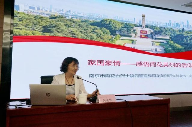 向媛華院長飽含深情地為大家講述了惲代英、鄧中夏等雨花臺烈士們的英勇事跡,為大家上了一堂感人至深的愛國主義教育課,并寄語青年學子努力成長成才,號召全黨學生心懷祖國,矢志奮斗,為中華民族偉大復興事業(yè)貢獻青年學子的力量。