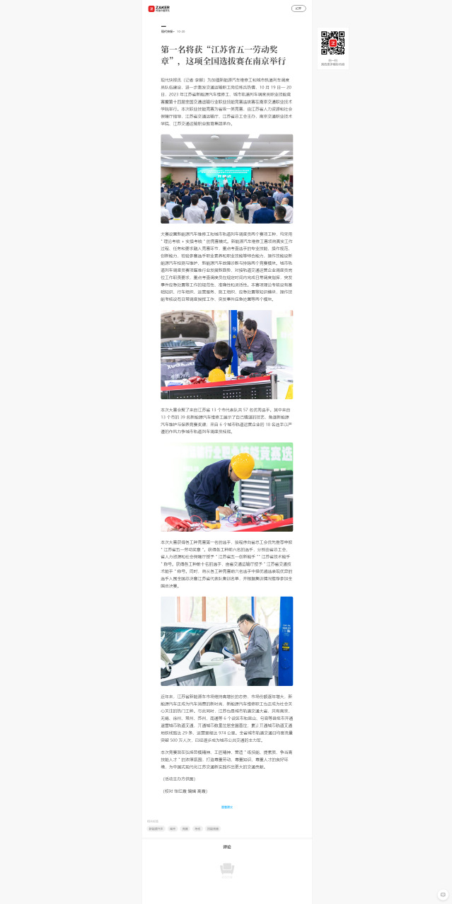 【現(xiàn)代快報】第一名將獲“江蘇省五一勞動獎章”,這項全國選拔賽在南京舉行