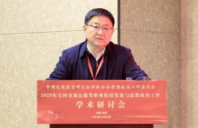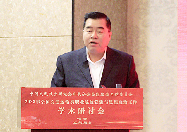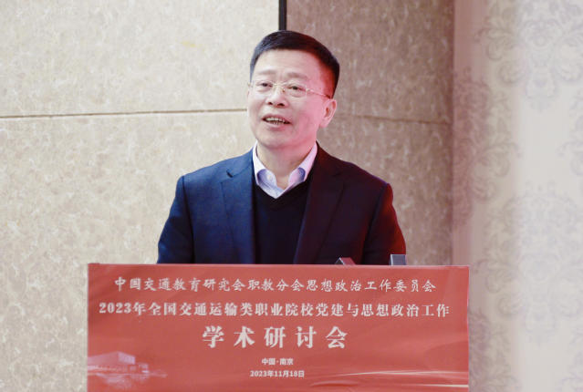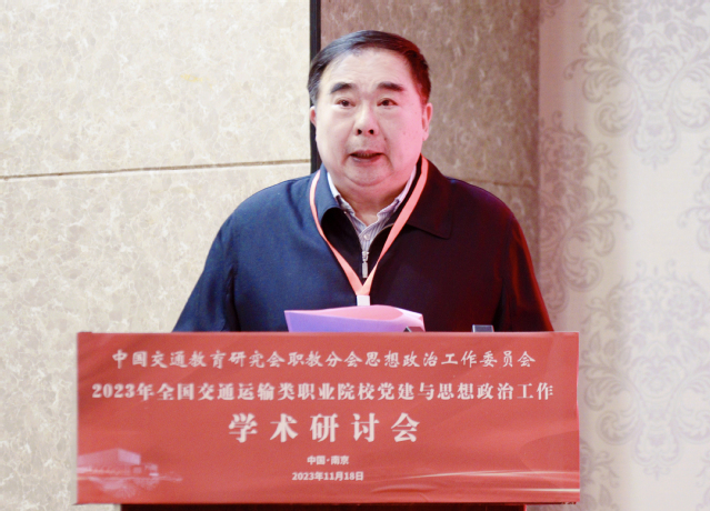 11月18日,由學(xué)院承辦的2023年全國(guó)交通運(yùn)輸類職業(yè)院校黨建與思想政治工作學(xué)術(shù)研討會(huì)成功舉辦。江蘇省交通運(yùn)輸廳黨組成員、副廳長(zhǎng)金凌,中國(guó)交通教育研究會(huì)會(huì)長(zhǎng)劉衛(wèi)民,中國(guó)交通教育研究會(huì)副會(huì)長(zhǎng)、職教分會(huì)理事長(zhǎng)楊澤宇,學(xué)院黨委書(shū)記張毅,學(xué)院黨委副書(shū)記、院長(zhǎng)王道峰,以及來(lái)自全國(guó)25所交通運(yùn)輸類職業(yè)院校的黨委書(shū)記、副書(shū)記、副校長(zhǎng)、黨委職能部門(mén)負(fù)責(zé)人、馬克思主義學(xué)院負(fù)責(zé)人等60余人參加。研討會(huì)由中國(guó)交通教育研究會(huì)職教分會(huì)思政工作委員會(huì)主任王東平主持。