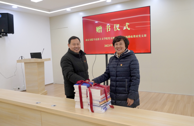 在座談交流環(huán)節(jié),學院黨委文愛民副書記和龔偉清副處長分別代表馬克思主義學院直屬黨支部和機場收費站黨支部開展了贈書活動;大家認真聽取了全國交通運輸優(yōu)秀文化品牌“大道如虹”文化品牌介紹,切身感受到了南京機場高速公路管理處根植沃土、枝繁葉茂、生機勃發(fā)的現(xiàn)代交通國企文化品牌的建設之路。雙方還就下一步如何開展好“黨建+校企合作”進行了探討。