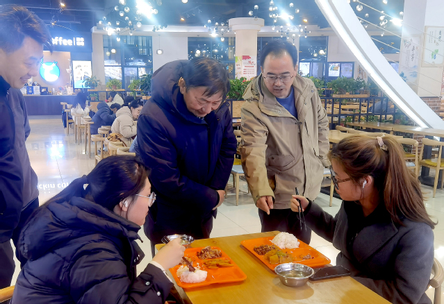黃在宇副會(huì)長(zhǎng)參觀了學(xué)生食堂、智慧餐廳、商貿(mào)服務(wù)區(qū)等場(chǎng)所,就服務(wù)管理制度和規(guī)范化流程、食品安全保障措施、餐飲質(zhì)量和品類等作了詳細(xì)調(diào)研,并與就餐的師生交流,深入了解大家對(duì)餐飲服務(wù)的滿意度。