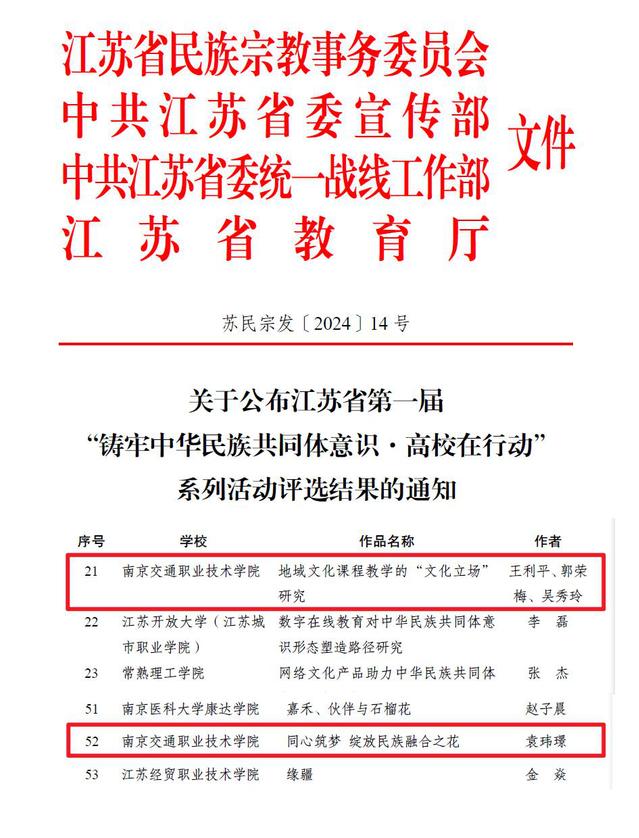 鑄牢中華民族共同體意識(shí),是學(xué)校立德樹人的一項(xiàng)基礎(chǔ)工程,事關(guān)黨和國(guó)家事業(yè)后繼有人,事關(guān)中華民族未來。近日,省民宗委、省委宣傳部、省委統(tǒng)戰(zhàn)部和省教育廳公布了省第一屆“鑄牢中華民族共同體意識(shí)·高校在行動(dòng)”系列活動(dòng)的評(píng)選結(jié)果,學(xué)院報(bào)送的兩項(xiàng)作品獲獎(jiǎng)。在征文比賽中,由基礎(chǔ)部直屬黨支部選送的《同心筑夢(mèng)綻放民族融合之花》(作者:袁瑋璟)獲普通類征文三等獎(jiǎng);由馬克思主義學(xué)院選送的《地域文化課程教學(xué)的“文化立場(chǎng)” 研究》(作者:王利平、郭榮梅、吳秀玲)獲學(xué)術(shù)類征文優(yōu)勝獎(jiǎng)。