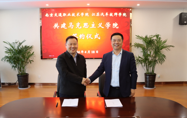 4月18日下午,南京交院馬克思主義學院與江蘇汽車技師學院馬克思主義學院在揚州舉行共建簽約儀式。活動由江蘇汽車技師學院黨委委員、副院長鄒新升主持。學院黨委副書記文愛民,江蘇汽車技師學院黨委副書記、副院長戴良鴻以及雙方馬克思主義學院負責人、骨干教師代表參加共建活動。