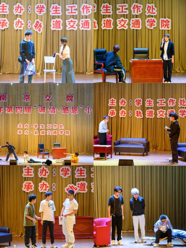 同學(xué)們圍繞“誠(chéng)信·感恩”主題,自主策劃,自導(dǎo)自演將生活中的點(diǎn)滴細(xì)節(jié)融入到作品當(dāng)中,從幽默溫暖的生活瑣事到引人共鳴的社會(huì)熱點(diǎn),傳遞了積極向上的價(jià)值觀,整場(chǎng)比賽掌聲不斷,感人的劇情,精彩的表演,贏得了現(xiàn)場(chǎng)評(píng)委和觀眾的高度贊揚(yáng)。經(jīng)過激烈角逐,建筑工程學(xué)院作品《走過場(chǎng)》獲一等獎(jiǎng);軌道交通學(xué)院作品《坑》、路橋與港航工程學(xué)院作品《天網(wǎng)恢恢》獲二等獎(jiǎng);運(yùn)輸管理學(xué)院作品《錢去哪兒了》、人文藝術(shù)系作品《真的假不了 假的跑不掉》、電子信息工程學(xué)院作品《一個(gè)女婿半個(gè)兒》、汽車工程學(xué)院作品《還不還》獲三等獎(jiǎng)。