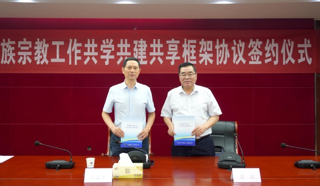 6月19日下午,中共南京市江寧區(qū)委統(tǒng)戰(zhàn)部與學(xué)院簽署《校地民族宗教工作共學(xué)共建共享框架協(xié)議》。學(xué)院黨委書記張毅和中共江寧區(qū)委統(tǒng)戰(zhàn)部副部長、民宗局局長江良圣代表雙方簽訂了協(xié)議。江寧區(qū)民宗局有關(guān)負(fù)責(zé)人,學(xué)院黨委統(tǒng)戰(zhàn)部、黨委宣傳部等部門領(lǐng)導(dǎo)及20余位校民主黨派基層組織負(fù)責(zé)人、少數(shù)民族師生代表共同見證了協(xié)議簽署。簽約儀式由黨委委員、宣傳部部長袁茜主持。