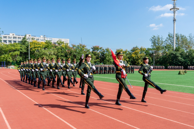 張毅書記下達(dá)“按計(jì)劃進(jìn)行”命令后,19個(gè)徒手方隊(duì)在以軍訓(xùn)團(tuán)旗為首的戰(zhàn)旗方隊(duì)引領(lǐng)下,在莊重威嚴(yán)的分列式進(jìn)行曲中闊步入場,整齊劃一地依次通過主席臺,接受檢閱。