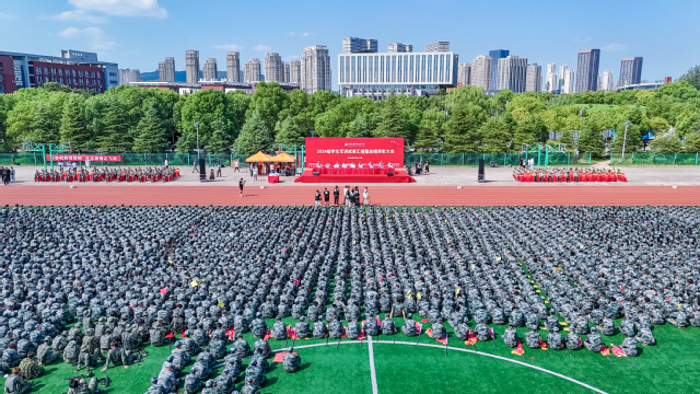 少年不負(fù)戎裝夢,沙場點(diǎn)兵試鋒芒。9月24日上午,2024級學(xué)生軍訓(xùn)成果匯報(bào)暨總結(jié)表彰大會在田徑場隆重舉行。學(xué)院黨委書記張毅,黨委副書記文愛民,紀(jì)委書記張徐剛,副院長劉雪芬,組織部部長康建軍,承訓(xùn)部隊(duì)營長、新生軍訓(xùn)團(tuán)團(tuán)長張道均等領(lǐng)導(dǎo)出席大會。2024級大學(xué)生軍訓(xùn)工作領(lǐng)導(dǎo)小組成員、軍訓(xùn)團(tuán)全體工作人員,全體教官以及4300余名參訓(xùn)新生參加了匯報(bào)會。大會由學(xué)院副院長劉雪芬主持。