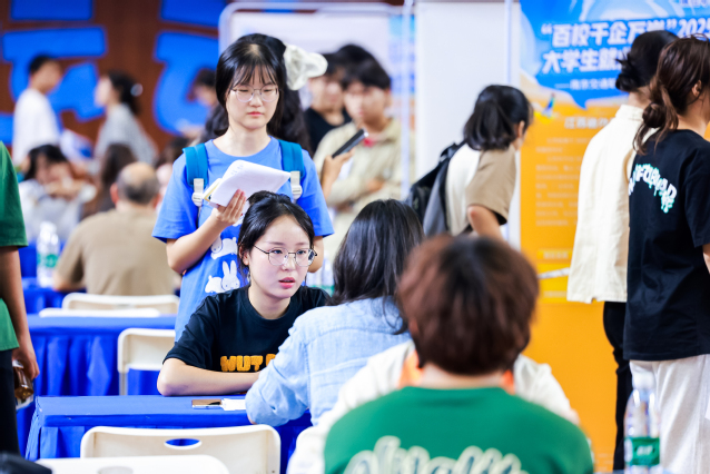 招聘會(huì)現(xiàn)場(chǎng)人頭攢動(dòng)、氣氛熱烈,江寧大學(xué)城多所高校的2025屆畢業(yè)生帶著精心制作的簡(jiǎn)歷,積極向用人單位工作人員了解企業(yè)發(fā)展前景、單位用人需求等,并向心儀的單位投遞簡(jiǎn)歷。據(jù)統(tǒng)計(jì),本次招聘會(huì)吸引3000多名學(xué)生參加,投遞簡(jiǎn)歷2800余份,1200余人與用人單位初步達(dá)成就業(yè)意向。