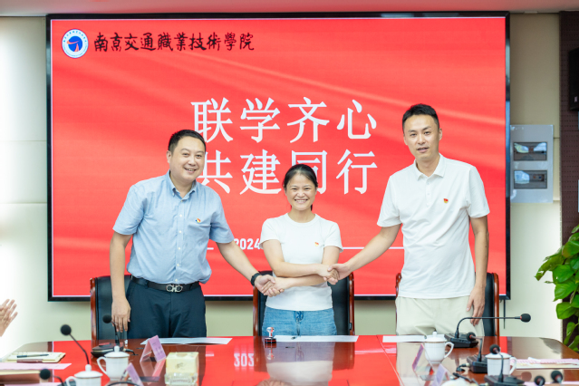 隨后,玉樹路社區(qū)黨委書記郭春宣讀《黨建共建合作框架協(xié)議》,在與會人員見證下,三方代表共同簽署。合作內(nèi)容有:學(xué)校在玉樹路社區(qū)掛牌成立“南京交通職業(yè)技術(shù)學(xué)院學(xué)生志愿服務(wù)基地”,玉樹路社區(qū)在學(xué)校成立“玉樹路社區(qū)居民繼續(xù)教育合作基地”、“玉樹路社區(qū)居民體育教育合作基地”,在黨員結(jié)對與支部共建、老年教育與服務(wù)、青少年科普教育、社區(qū)體育活動開展等方面達(dá)成合作意向。