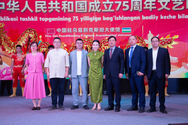 中國(guó)駐烏茲別克斯坦使館公使銜參贊王繼偉、中國(guó)駐烏茲別克斯坦使館參贊遲潤(rùn)林,烏茲別克斯坦文化部部長(zhǎng)顧問(wèn)沙赫魯赫·阿克巴羅夫出席活動(dòng)并致辭。中國(guó)在當(dāng)?shù)氐?00余家企、事業(yè)單位,高校代表,近千名中烏各界友好人士出席本次活動(dòng)。王道峰院長(zhǎng)帶團(tuán)慰問(wèn)探望參演教師,并觀看了文藝匯演。