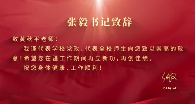 會后,黨委委員、黨委組織部(統(tǒng)戰(zhàn)部)部長康建軍代表校黨委看望慰問了在新疆交通職業(yè)技術(shù)學院的援疆教師黃秋平。學校黨委書記張毅、校長王道峰和汽車工程學院全體教職工以視頻形式向黃秋平老師致以了慰問和祝福。