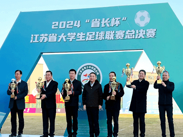 12月8日,2024“省長杯”江蘇省大學(xué)生足球聯(lián)賽總決賽暨閉幕式在南京農(nóng)業(yè)大學(xué)濱江校區(qū)舉行,省長許昆林,副省長夏心旻、趙巖出席閉幕式。省教育廳廳長、黨組書記、省委教育工委書記江涌為我校頒發(fā)冠軍獎杯(高職高專女子組),校黨委書記張毅代表學(xué)院接受領(lǐng)導(dǎo)頒獎。體育部黨政負(fù)責(zé)人帶隊參加。