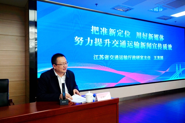 江蘇省交通運(yùn)輸廳政研室主任王發(fā)國作《把準(zhǔn)新定位 用好新媒體 努力提升交通運(yùn)輸新聞宣傳質(zhì)效》專題報(bào)告。報(bào)告結(jié)合交通行業(yè)背景,從交通運(yùn)輸?shù)臅r(shí)代定位、意識(shí)形態(tài)工作的重要性、新聞宣傳媒介、輿情處置注意事項(xiàng)、新聞從業(yè)者的心態(tài)與調(diào)整等五方面系統(tǒng)闡釋新時(shí)期如何做好新聞宣傳工作。整場講座語言風(fēng)趣生動(dòng)、案例翔實(shí)鮮活、內(nèi)容充實(shí)豐富,為學(xué)院今后的宣傳思想文化工作提供指導(dǎo),也讓與會(huì)教師深刻領(lǐng)會(huì)新聞宣傳工作的重要性和必要性。