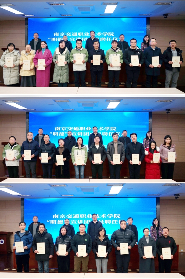 會(huì)上,舉行了學(xué)院“明德”宣講團(tuán)講師聘任儀式,黨委組織部部長康建軍宣讀了《南京交通職業(yè)技術(shù)學(xué)院黨委關(guān)于成立“明德”宣講團(tuán)的通知》,與會(huì)領(lǐng)導(dǎo)為“博士宣講團(tuán)”“書記宣講隊(duì)”頒發(fā)聘書。學(xué)院明德宣講團(tuán)自“人民工匠”進(jìn)校園與師生共話匠心傳承活動(dòng)啟動(dòng)以來,以“小切口”“小故事”為切入點(diǎn),持續(xù)開展了弘揚(yáng)中國共產(chǎn)黨人精神譜系宣講活動(dòng),切實(shí)推動(dòng)理論宣講深入人心。