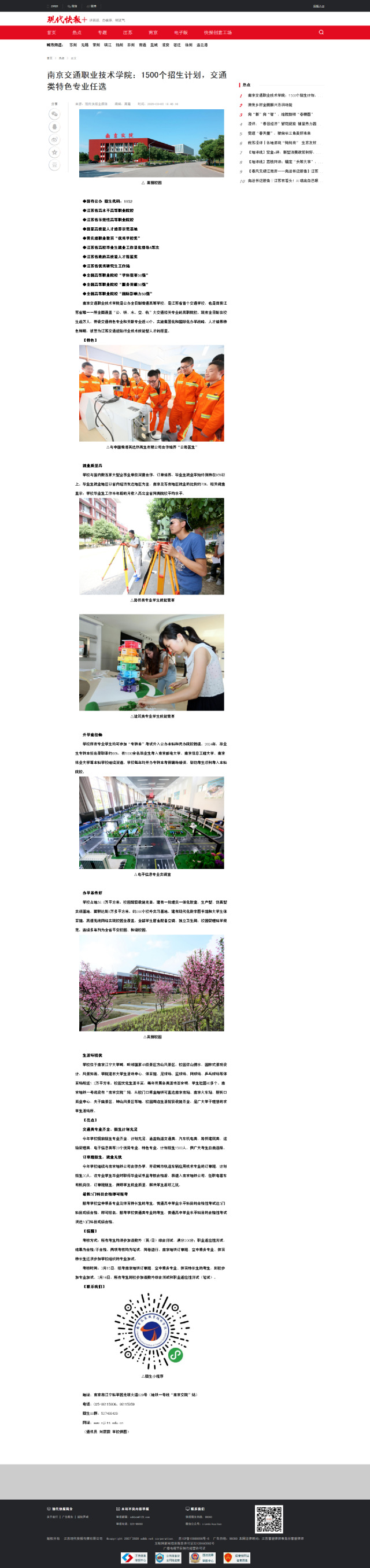 【現(xiàn)代快報(bào)+】南京交通職業(yè)技術(shù)學(xué)院:1500個(gè)招生計(jì)劃,交通類特色專業(yè)任選