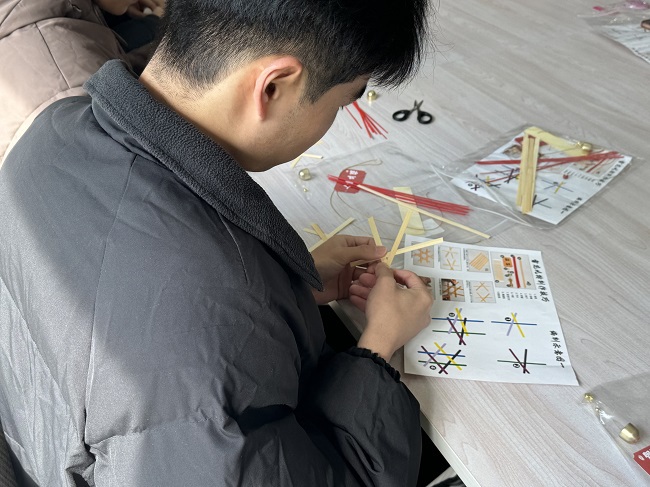 活動(dòng)中,學(xué)生們親手體驗(yàn)了竹編風(fēng)鈴的制作過程。從選材、編織到組裝,每一個(gè)步驟都考驗(yàn)著大家的耐心與專注力。竹編不僅是一項(xiàng)傳統(tǒng)技藝,更是一種心靈的修煉。通過親手制作,學(xué)生們?cè)诰幙椀倪^程中逐漸放松心情,感受到手工藝帶來(lái)的寧?kù)o與滿足。