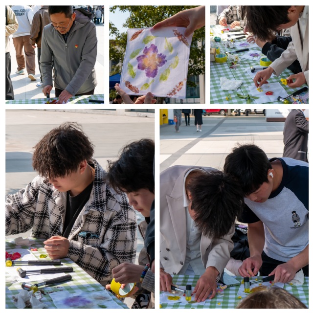 2025年3月19日,汽車工程學(xué)院原心工作室在思源堂廣場創(chuàng)新推出“植物拓染藝術(shù)創(chuàng)作”“野生諸葛亮?xí)彪p軌實踐課堂,以“非遺技藝+朋輩互助”的跨界融合,吸引了300余名師生共赴這場沉浸式心靈成長體驗。汽車工程學(xué)院黨總支書記劉陽、副書記徐敏、關(guān)工委常務(wù)副主任屠衛(wèi)星及原心工作室?guī)熒虆⑴c,與青年學(xué)子共赴一場春日里的身心療愈之旅。