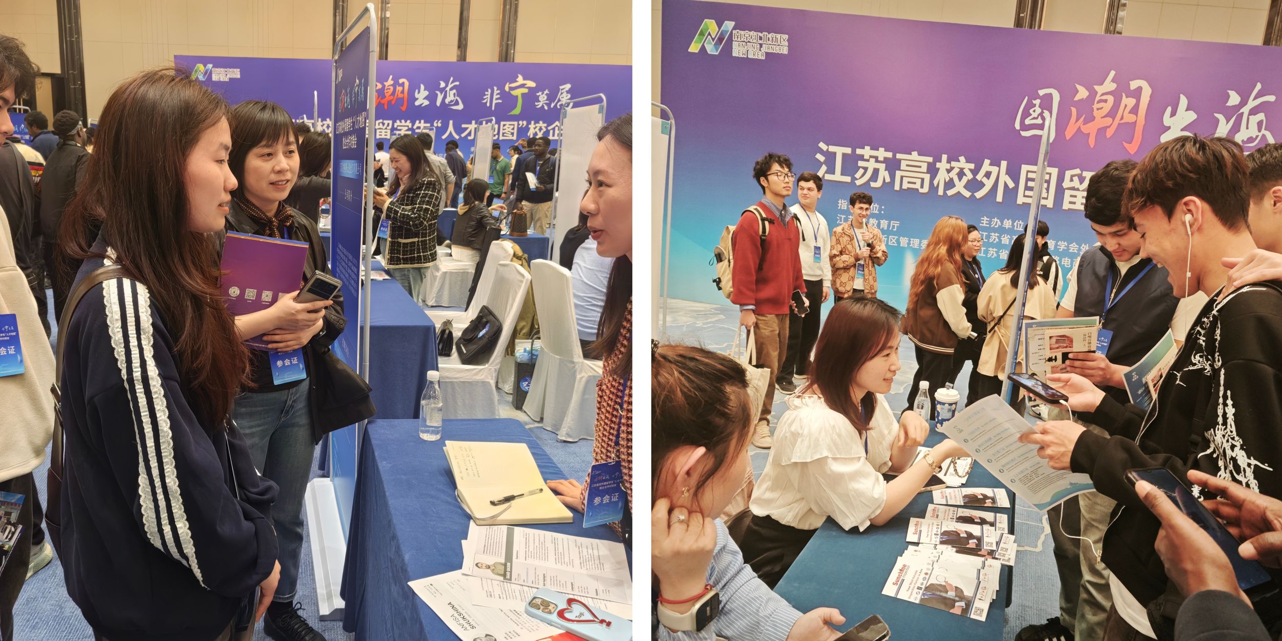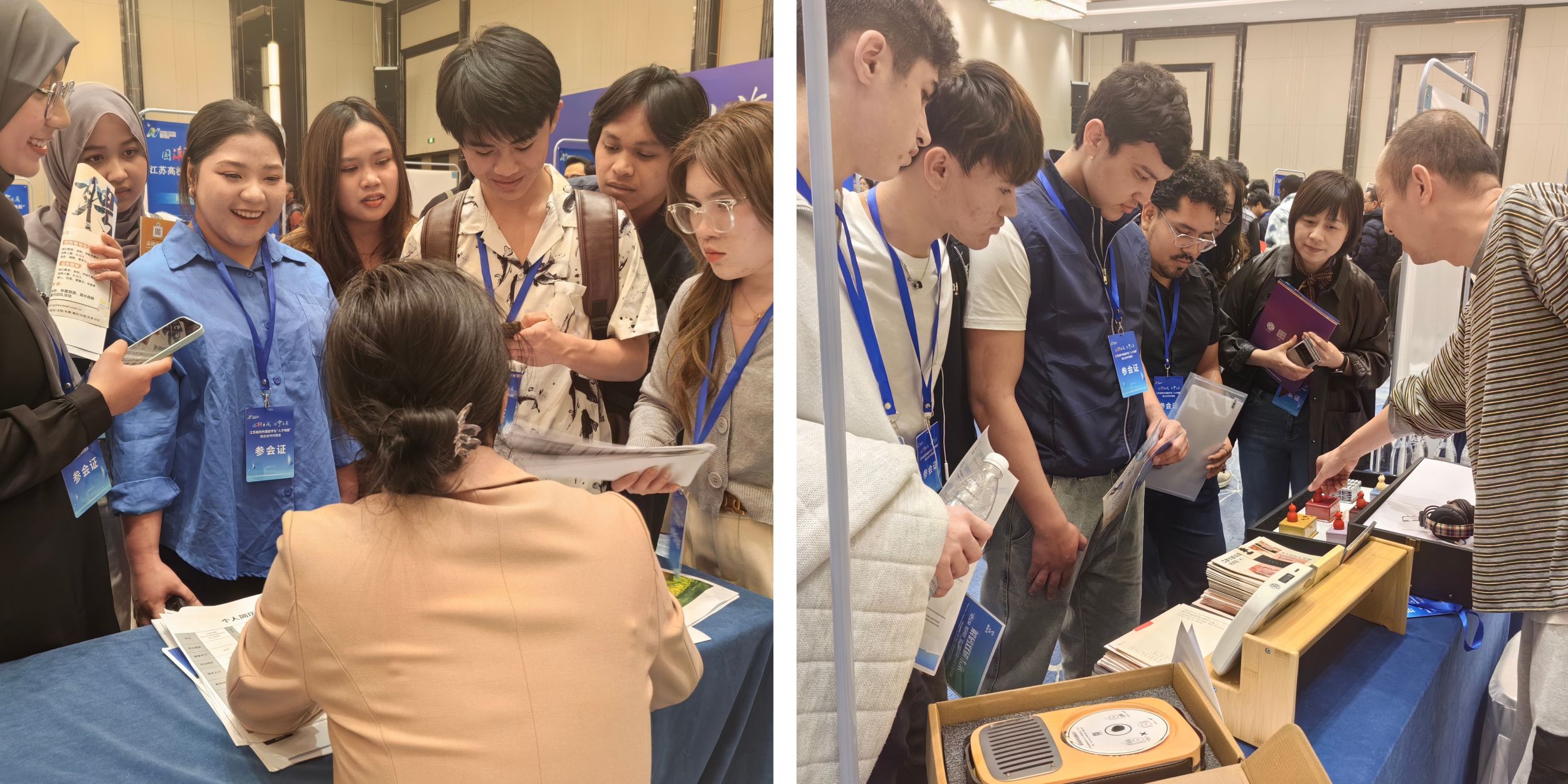 專場(chǎng)招聘環(huán)節(jié)結(jié)束后,留學(xué)生還參觀了國(guó)潮非遺展廳。展廳內(nèi)陳列著刺繡、南京絨花、中華花藝等非遺代表性項(xiàng)目,通過(guò)沉浸式觀展及技藝體驗(yàn),留學(xué)生得以直觀感受中華傳統(tǒng)工藝之美,深刻體悟中國(guó)非物質(zhì)文化遺產(chǎn)的深厚底蘊(yùn)與時(shí)代傳承。