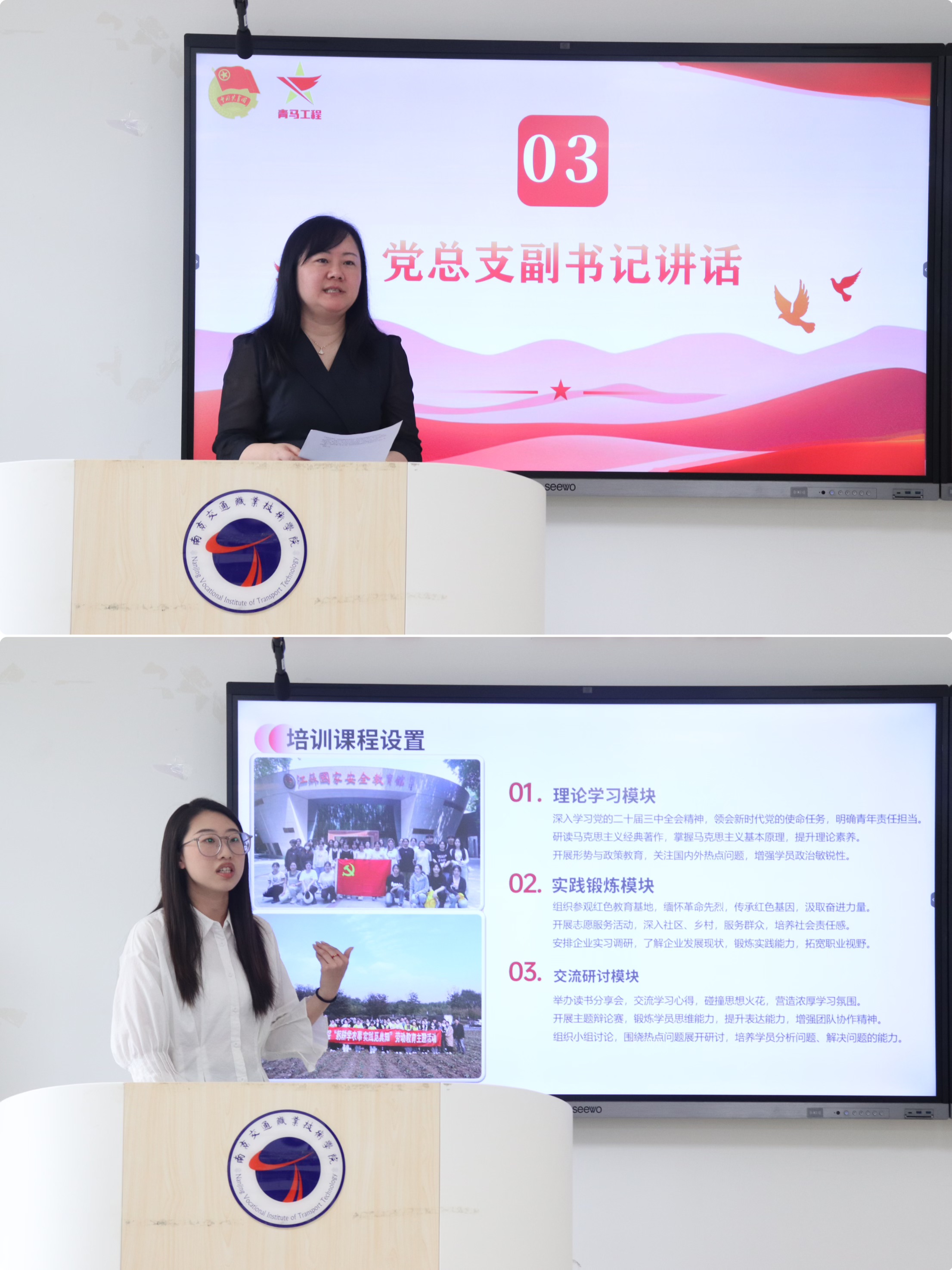 開班儀式上,分團委書記劉宇從介紹“青馬工程”的起源、發(fā)展以及重要意義談起,她強調(diào)“青馬工程”既是時代的召喚,也是青年的成長階梯,希望學員們要立志做“有理想、敢擔當、能吃苦、肯奮斗”的新時代好青年,在培訓中錘煉品格、增長才干,以青春之我、奮斗之我,在全面建設社會主義現(xiàn)代化國家的火熱實踐中貢獻青春力量。