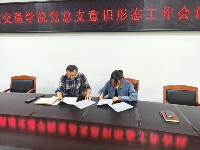 會議最后,黨總支書記分別與內(nèi)設(shè)機構(gòu)負責人、全體輔導員簽訂了2025年學院落實意識形態(tài)工作責任書。