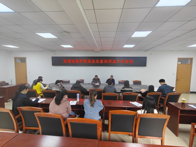 2025年4月9日下午,軌道交通學院黨總支在明志樓308會議室召開意識形態(tài)工作專題會議,學院黨總支委員、各內(nèi)設(shè)機構(gòu)負責人、全體輔導員參加了本次會議,會議由黨總支書記張曉焱主持。