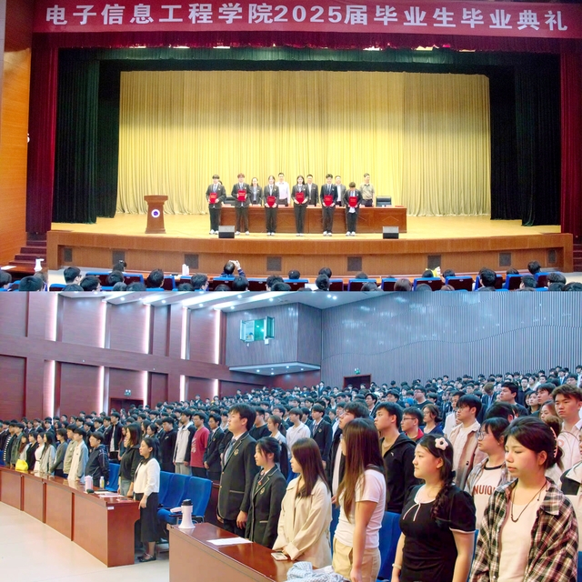 4月21日上午9點(diǎn),電子信息工程學(xué)院2025屆畢業(yè)生畢業(yè)典禮在圖書館報(bào)告廳舉行。學(xué)校紀(jì)委書記張徐剛、教務(wù)處處長吳兆明、學(xué)生工作處處長王紅星、電子信息工程學(xué)院黨政領(lǐng)導(dǎo)、畢業(yè)班班主任、輔導(dǎo)員及2025屆全體畢業(yè)生參加了畢業(yè)典禮,畢業(yè)典禮由電子信息工程學(xué)院院長高水娟主持。