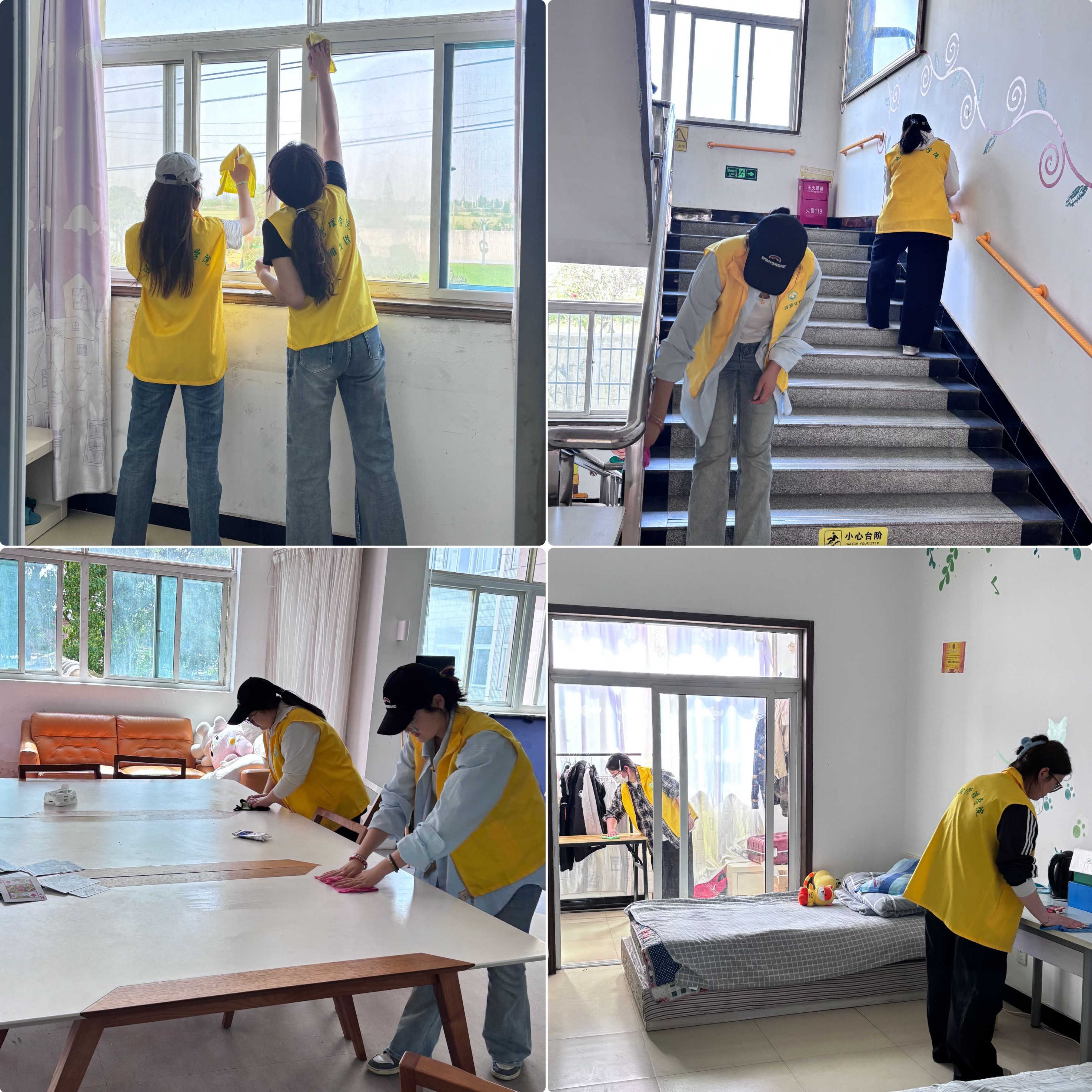志愿者們兵分兩路,分別前往學員宿舍和教室開展衛(wèi)生打掃工作。志愿者們在宿舍區(qū)仔細整理被褥、擦拭桌椅,將零散的物品歸置整齊。與此同時,另一組志愿者們手持抹布和拖把,認真清理桌面和地面的每一處污漬,仔細擦拭黑板和講臺,還對書架上的書籍進行了分類整理。結束衛(wèi)生打掃后,志愿者們便帶著水桶、噴壺等工具來到園區(qū)綠植區(qū),有的為低矮的灌木澆水,有的清理落葉雜草,有的負責修剪枯枝?;顒舆^程中,志愿者們與殘障學員們不時展開交流。他們耐心傾聽學員們的心聲。庭院中,隨處可見志愿者身著黃馬甲忙碌的身影。