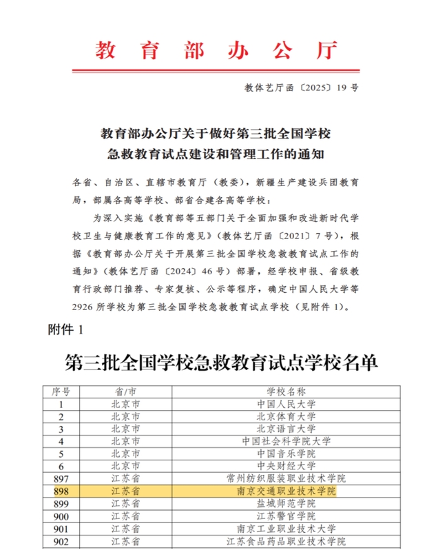 近日,教育部公布第三批全國學(xué)校急救教育試點學(xué)校名單,我院憑借扎實的急救教育基礎(chǔ)與創(chuàng)新實踐成功入選,標(biāo)志著校園生命安全教育進(jìn)入規(guī)范化、專業(yè)化發(fā)展新階段。
