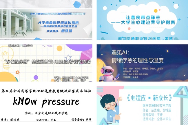 為深入貫徹江蘇省教育廳心理健康宣傳教育月工作部署,學院于5月全面啟動“培育積極心態(tài) 增強心理韌性”心理健康教育月系列活動。創(chuàng)新構(gòu)建“德育領(lǐng)航、智慧啟心、體魄強基、美勞協(xié)同”四維聯(lián)動機制,通過多元化活動形式構(gòu)建心理健康教育長效機制,切實幫助學生以健康心態(tài)積極應(yīng)對學業(yè)就業(yè)等成長挑戰(zhàn)。